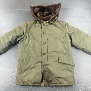VTG LL Bean Field Jacket Men 44 Army Green Parka 50's 60's Quilt Lined Talon