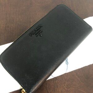 Prada Large Saffiano Leather Zip-Around Wallet RARE Monochrome