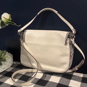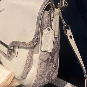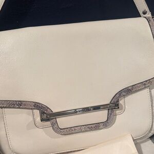 Coach Taylor Mixed Flap shoulder bag in cream and gray. Stylish and versatile design. See pics for callouts. Pen marks on bag and inside as shown in pics and on live show