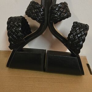 Step out in style with these chic black braided heels. Perfect for any occasion, these shoes offer both elegance and comfort. The bottoms show light use, but they are like new.