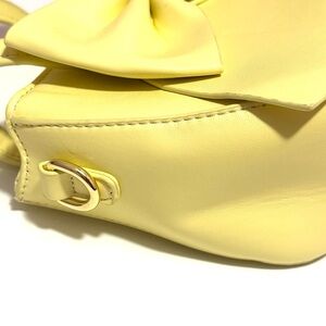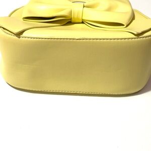Chic and stylish, this yellow bow handbag is perfect for any occasion. Its vibrant yellow color adds a pop of brightness to your outfit. Crafted with attention to detail, this bag is both fashionable and functional. Used twice. Comes with crossbody strap.