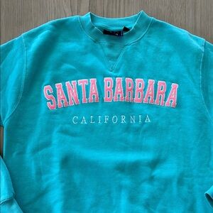 Stay cozy and stylish with this Santa Barbara California sweatshirt. Featuring a vibrant teal color, it's perfect for casual outings or cozy stay at home moments.