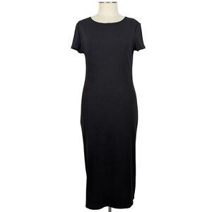 bebe Midi T-Shirt Ribbed Dress Short Sleeve Bodycon Fitted LBD Black M NWT
