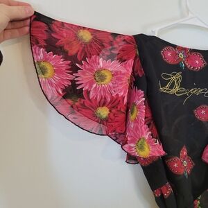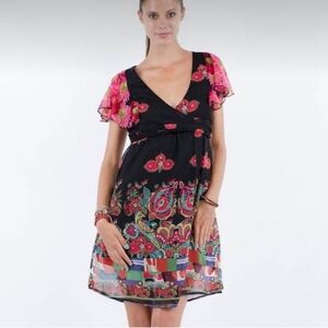 Desigual Vest Juliette Flutter Sleeve Wrap Dress Floral size 38