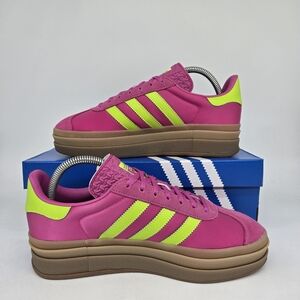 New Adidas Gazelle Bold 'Lucid Fuchsia Solar Slime Satin' Women's Shoes Size 6