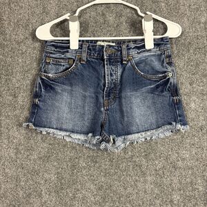 Free People Shorts Womens Size 25 Blue Button Fly Raw Hem Boho Hippie Grunge