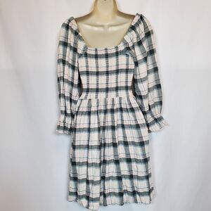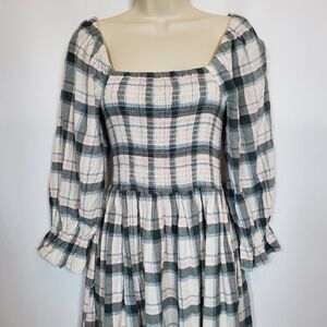 Madewell Women’s Lucie Smocked Mini Dress Small Lebaum Plaid 3/4 Sleeve Preppy
