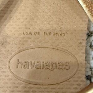 Chic and comfortable Havaianas sandals. Perfect for casual wear. Color is gold! Has a platform to them!