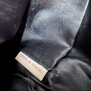 vintage black satin beaded evening bag with a gold frame and kiss-lock closure. The chain can be used as a strap or left in bag to use as a clutch. Great condition for vintage. No missing beads that I can see.