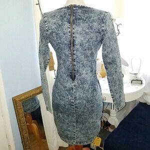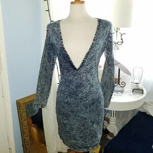 Aphrodite Denim Dress • Sexy Plunge Neckline • Stonewashed • Size Medium