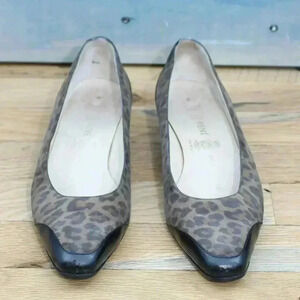 Vintage Rene Mancini Cheetah Leather Animal Print Flats 80s 90s Size 36.5 US 6.5