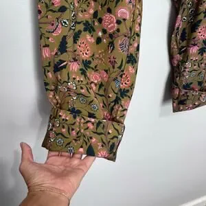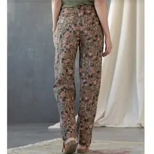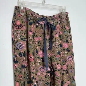 Sundance Madora Pants Olive Green Multi Floral Print Drawstring Waist