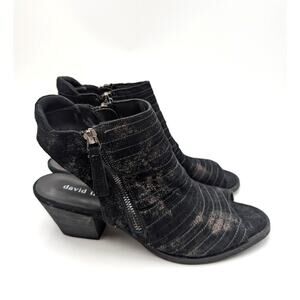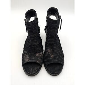 David Tate Sideview Block Heel Sandal Women's Black Metallic Size US9N EU39.5