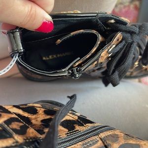 Alex Marie Leopard Print Patent Rhinestone Buckle Boot Size 7.5