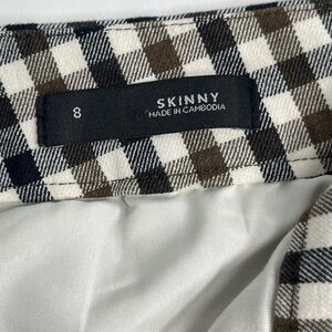 LOFT Women's Black Brown White Gingham Plaid Pants Skinny Cropped Stretch Size 8