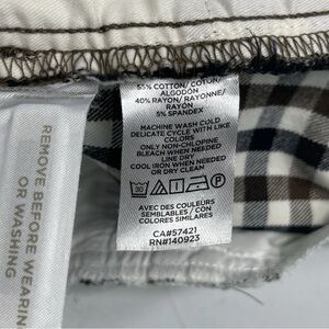These LOFT Women's Black Brown White Gingham Plaid Pants are a versatile addition to any wardrobe. With a slim fit and cropped style, they are perfect for a casual day out or a business setting. Made from a comfortable blend of cotton, rayon, and spandex, these pants offer stretch for added flexibility. The classic black, brown, and white gingham pattern adds a touch of style to these practical and easy-to-care-for pants, making them a great choice for any season.
