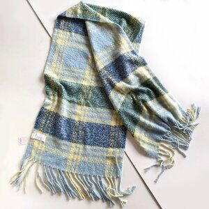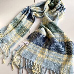 NWT Free People Homecoming Plaid Blanket Scarf School Blue Large Soft Fringed