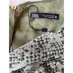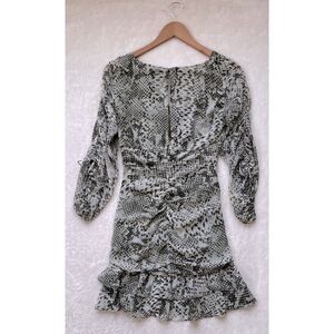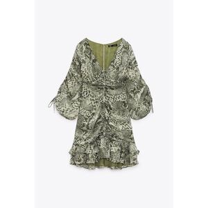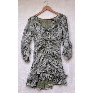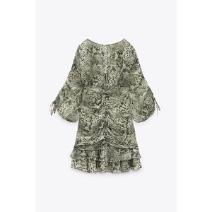 NWOT Zara Animal Print Draped Ruched Flounce Hem Tied V Neck Mini Dress, Small