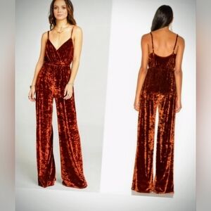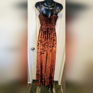 Show Me Your Mumu The Richards Jumpsuit Copper Crushed Velvet Size Small EUC