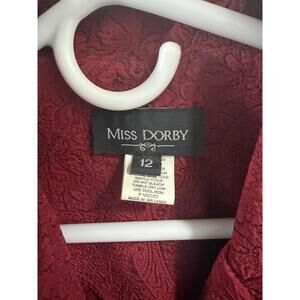 Miss Dorby Women's Deep Red Jacquard Floral Skirt Suit 12