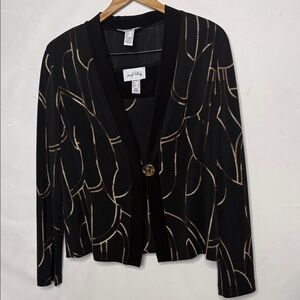 Size 12 absolutely gorgeous. Has a brass button closure in the front of the jacket can be worn with the jacket or without I’ve shown pictures of both absolutely gorgeous. See all pictures.