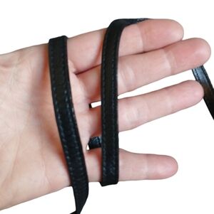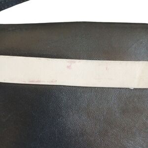 Beautiful soft black leather with a cream leather stripe across the front. Black fabric interior with one zipper pocket.