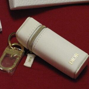 Dior Rouge lipstick in their classic Rosewood shade 'Icone' with an elegant lipstick case from Dior Paris. The case features a zipped closure and gold Dior branded clip attachment to add to a handbag or keyring.