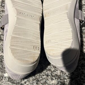 Vionic Shelby Women’s Sz 8.5 Gray Suede Mary Jane Orthotic Flats shoes loafer