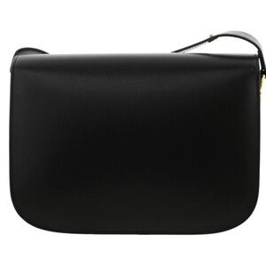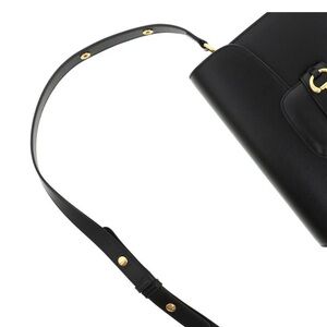 Elegant black leather shoulder bag with gold-tone accents. Perfect for any occasion.