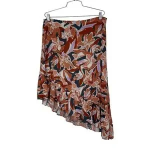 Nine West Asymmetrical Midi Skirt L Multi Color
