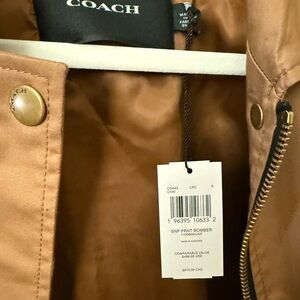 Chic bomber jacket by Coach. Features a sleek design with a zip closure. Perfect for versatile styling.