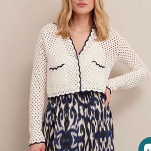 New CARA CARA Roma Cardigan Ivory Navy Crochet Medium