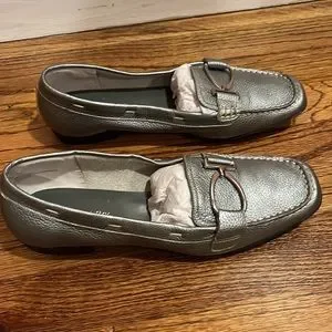 NWOT St. John’s Bay Silver Leather Flats Size 9