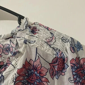 TALBOTS SMOCKED SHOULDER TOP - FLORAL VINES SIZE S