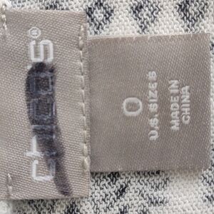 Elevate your wardrobe with this stunning Chicos black and white open long sleeve damask sweater.