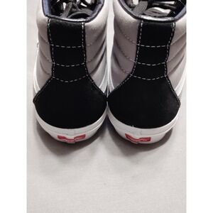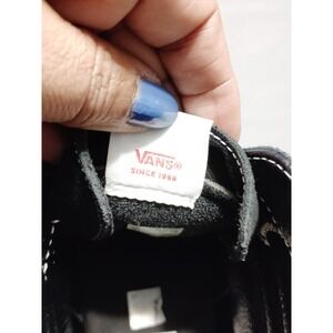 Preppy Casual Classic Art to Wear Gothic Grunge Athletic Training----The NWOB VANS Sk8-Hi Flame Men's High Top Skate Shoes in size 13 feature a black suede and canvas construction with a lace-up closure. The rubber outsole provides traction, making them suitable for skateboarding and other athletic activities. With a cushioned foam insole and M width, these sneakers are comfortable for both casual wear and activewear occasions, making them a versatile choice for various seasons. The VANS Sk8-Hi model offers a classic yet edgy style with a high top shoe shaft, perfect for those looking for a combination of performance and fashion in their footwear.