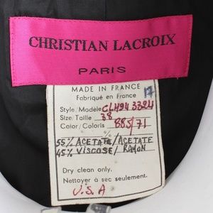 Authentic, preowned, vintage Christian Lacroix Jacket Sequins Embellished with Stars & sculptural satin & velvet collar, circa the 90s. Longer cut, military style. Super rare and super cool piece!! Rayon blend gabardine fabric; fully lined; dry clean recommended. Structured cut & fit with lace vents in back (so chic!).Tagged 38; measurements (appx): bust - 36", waist - 29", shoulder to hem length - 31", sleeves - 22". Preowned/vintage with minimal signs of prior wear.