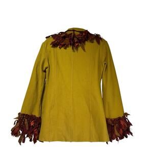 Cat Ballou Mustard Wool Fringe Jacket M Boho Leaf Trim Fall Statement Coat