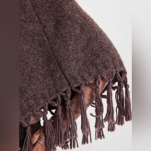 Free People Emma Knitted Cropped Poncho Java Chip One Size