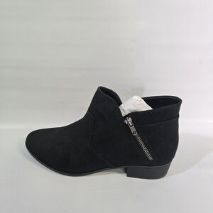 Sun + Stone Black Western Moto Ankle Booties Zip Faux Suede Block Heel Size 12