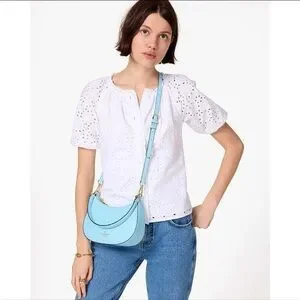 This elegant shoulder bag from Kate Spade features a stunning blue hue, complemented by gold-tone hardware and a minimalist design. Its compact size and versatile silhouette make it perfect for both casual outings and dressier occasions.