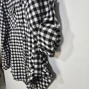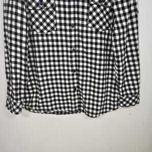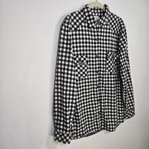 Matchstick Argus Adult Flannel Check Button Up Shirt. Size Large. Black And White Buffalo Check. Two Button Flap Pockets On The Front. Roll Up Sleeve And Side Seam Option As Shown In Photos. Heavy 100% Cotton Flannel Fabric With Long Hem. Measurements Pit To Pit 21 Inches; High Low Length 29 Inches In The Front And 30 1/2 Inches In The Rear. Sleeve 24 1/4 Inches.