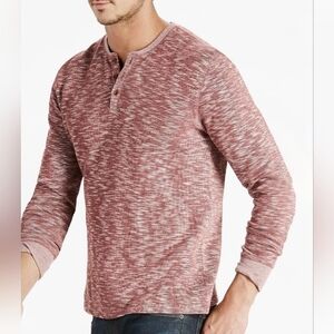 Lucky Brand Men's Burgandy Twisted Slub Space Dye Long Sleeve Henley Shirt