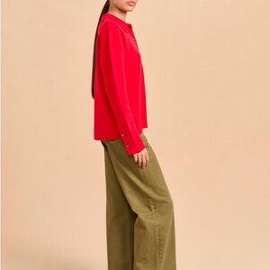 Reselling as it was a gift that didn’t fit; otherwise, very soft fabric, beautiful finishings. Buttoned cuffs.