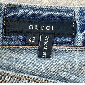 Gucci Mid Rise Tapered Straight Leg Jeans Concealed Button Fly Casual Blue