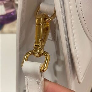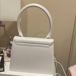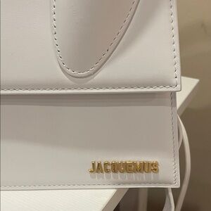 Chic Jacquemus bag in white leather. Unique handle design. Perfect for any occasion.