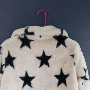 - Euc Pop Sugar fluffy cropped cream color black stars coat XS