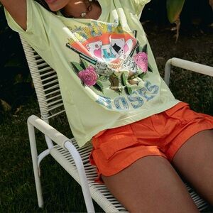 Match Guns N' Roses hard rock energy with a bright and bold, sunglow yellow boyfriend tee featuring the group's signature symbols that rocketed them into one of the world's largest bands. Designed with a card, and guns and roses graphic in an assortment of punchy colors, this one has classic written all over it.