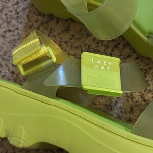 Melissa x Lazy Oaf Lime Platform Sandals with White Floral Details