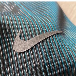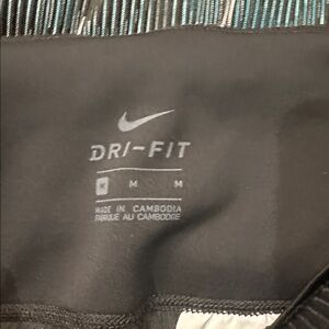 Nike running top with black base and teal accents. Comfortable and stylish for workouts.